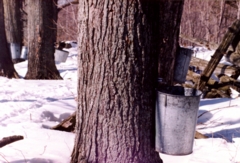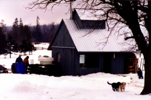 Our maple syrup business was inspired by Bernard and Edith Marcoux who became our immediate friends when they moved into the Shelburne area. Bernard, from a many generation French Canadian family, could not resist setting up a small evaporator when he moved to his farm in Melancthon township from Quebec. Both Nancy and I were drawn into the act and it was not long before we too had tapped our first trees.