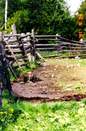 Not wanting to be swept through the culvert if the 4 x 4 cedar posts that formed the dam broke while I was drilling the 2" hole for the intake pipe, I waited until late in the season when the water level in the pond had receeded to a more safe level. As it was, I still had myself secured by a rope for safety's sake. There was more than enough flow of water once this system was put into place with the added advantage of the overflow from the water tank returning to the pond. The pond, which once had direct access by the cattle, has now been fenced and planted with a mix of maple, walnut, spruce, ash, and cedar again through a Healthy waters grant. This pond buffer not only provides a better water quality, free of fecal contaminants, for the cattle but also creates a protected area for duck nesting and enhances the natural beauty of the pond.