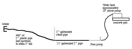 After 10 years the only repairs that have been made are to the poppet valve where the metal sealing wring had become worn. With the home farm unit, we ran a 400 foot length of plastic pipe up the stream in order to obtain the required minimum of a three foot fall of water. The volume of water pumped and the height to which the water can be pumped is directly proportional to the head of water that can be obtained. The few problems that we have had with this system are mud deposits in the line and objects, including more than one crayfish, that have jammed the poppet valve. The easiest way to clean the line is with my Honda transfer pump. As with all watering facilities, these units should be checked on a daily basis to ensure that they are working properly.